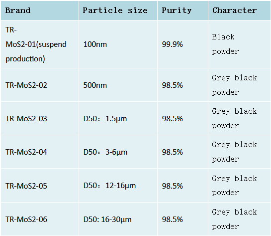 Our product lineup features a range of Molybdenum Disulfide (MoS2) powders tailored to satisfy diverse application needs. TR-MoS2-01 offers a suspended production option with a bit dimension of 100nm and a pureness of 99.9%, providing as black powder. TR-MoS2-02 through TR-MoS2-06 give grey-black powders with differing bit dimensions: TR-MoS2-02 at 500nm, TR-MoS2-03 with D50: 1.5 µm, TR-MoS2-04 with D50: 3-6µm, TR-MoS2-05 with D50: 12-16µm, and TR-MoS2-06 with D50: 16-30µm. All these versions boast a consistent pureness of 98.5%, making sure dependable performance across different commercial requirements.
